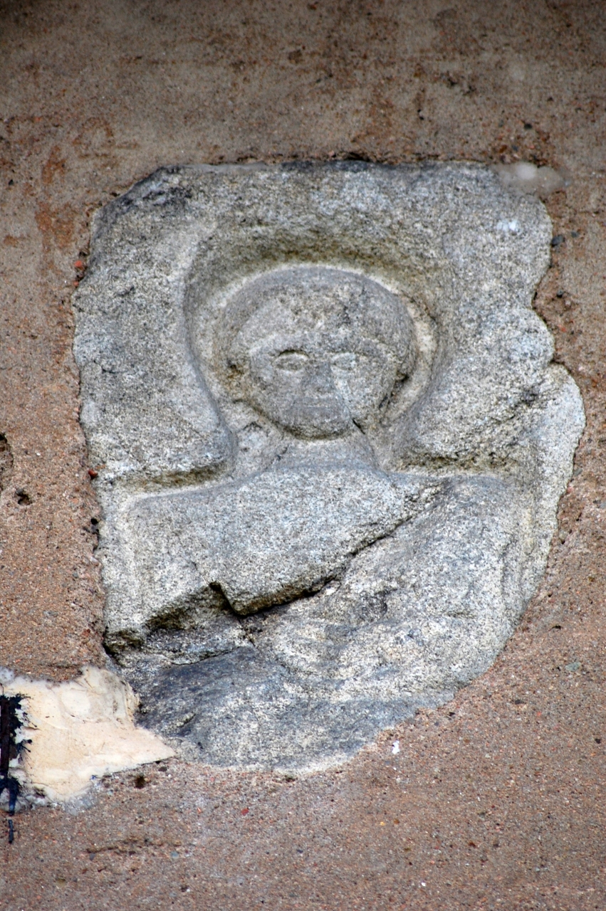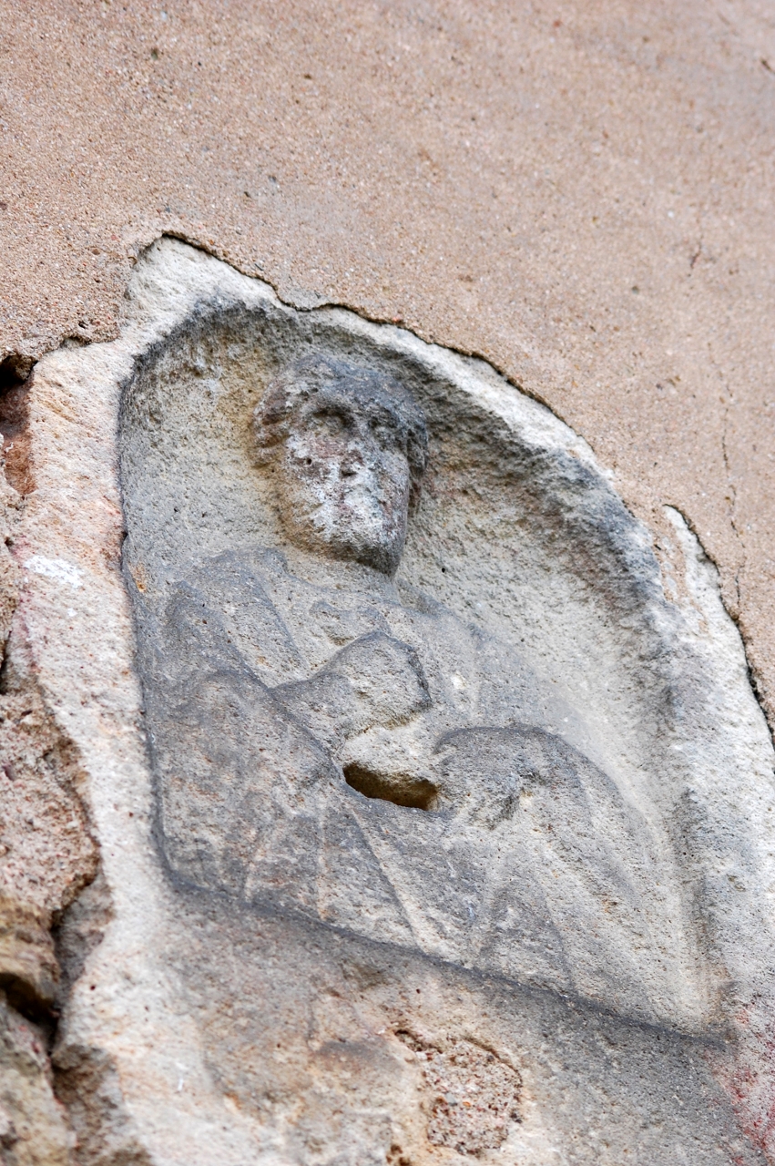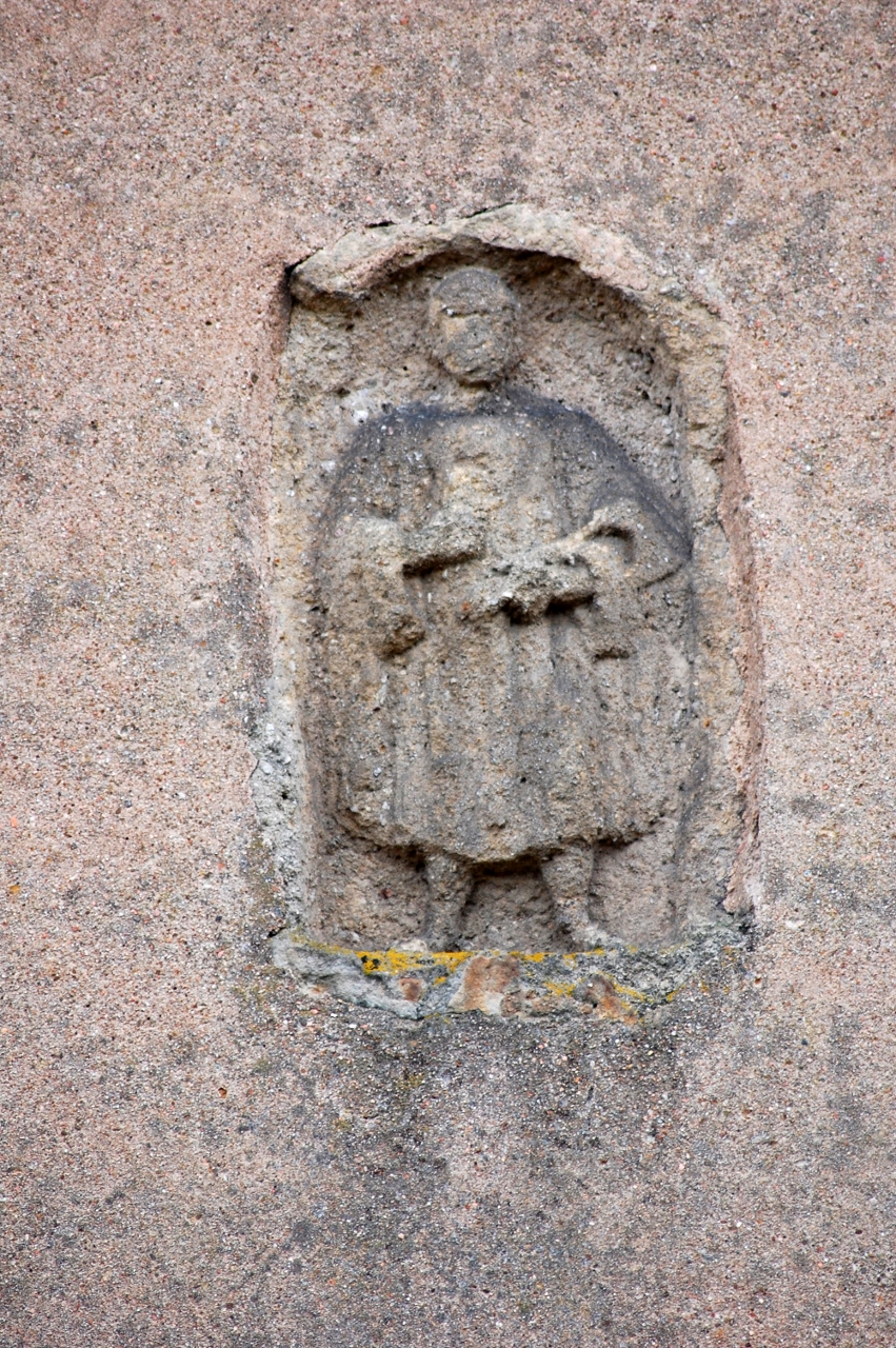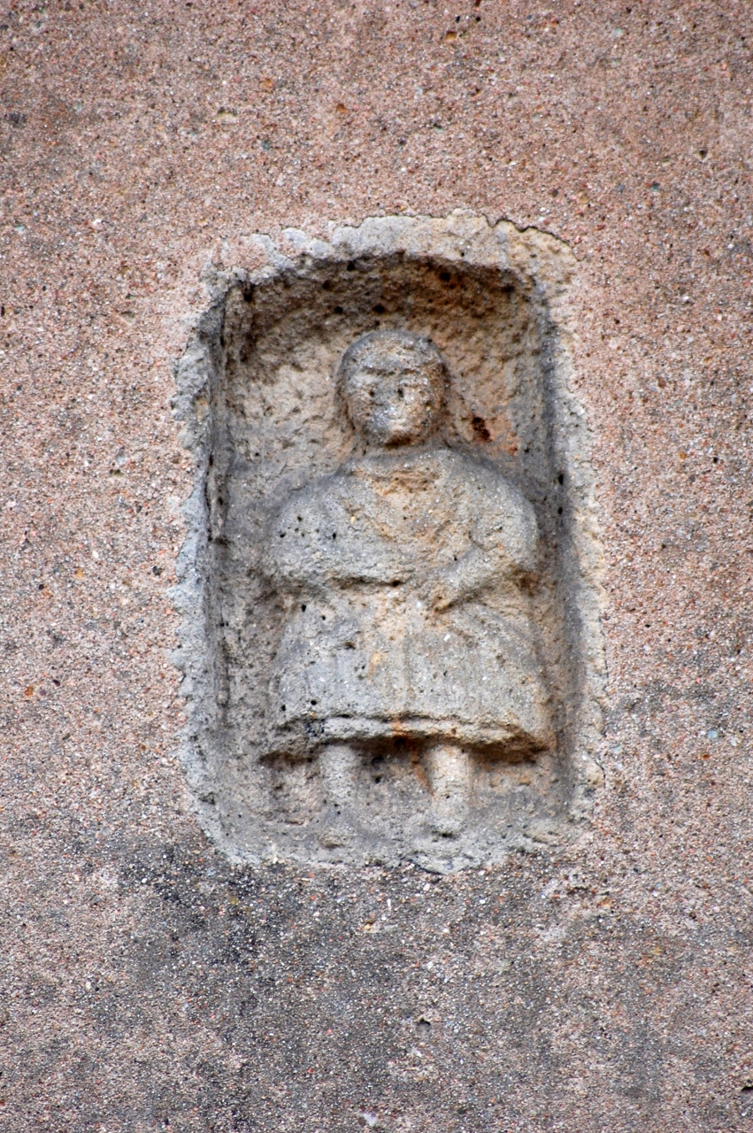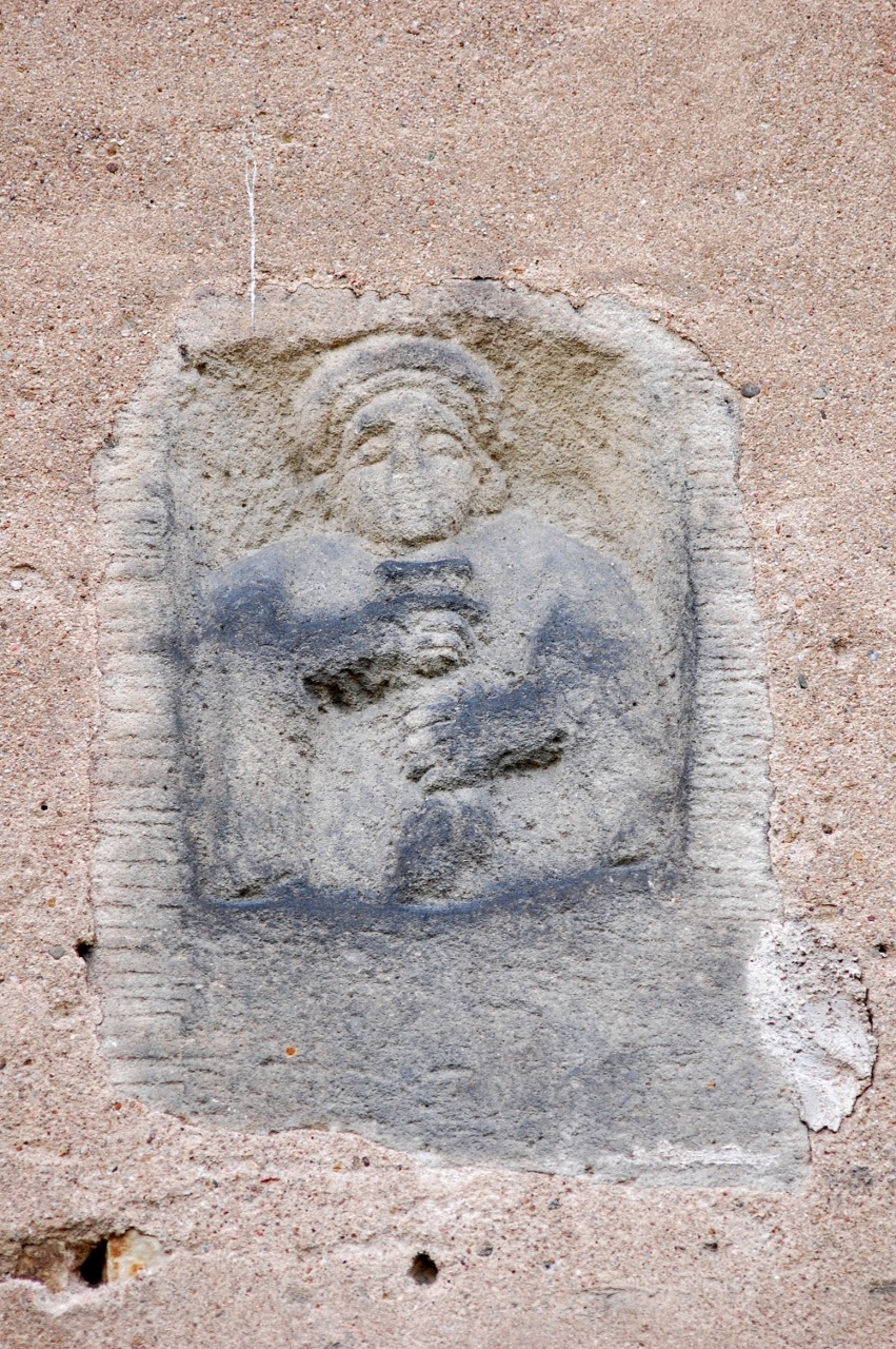 - Découverte avant 1848, cette stèle en grès mutilée, d’hauteur 1.50m, représentant un homme et une femme drapés, tenant chacun dans la main droite un objet allongé mal identifié. (L’abbé Devoucoux y voyait une sorte de cornet à liqueur ou a parfum. Inscription en haut à gauche. NO