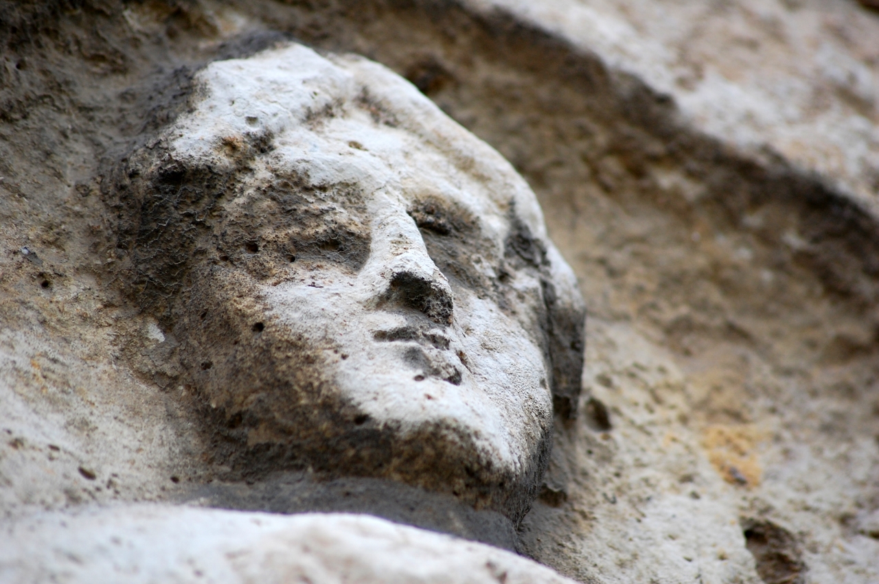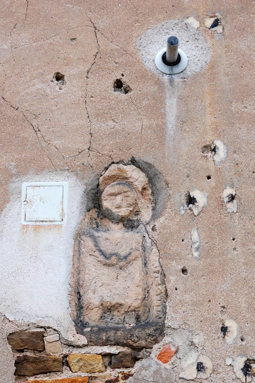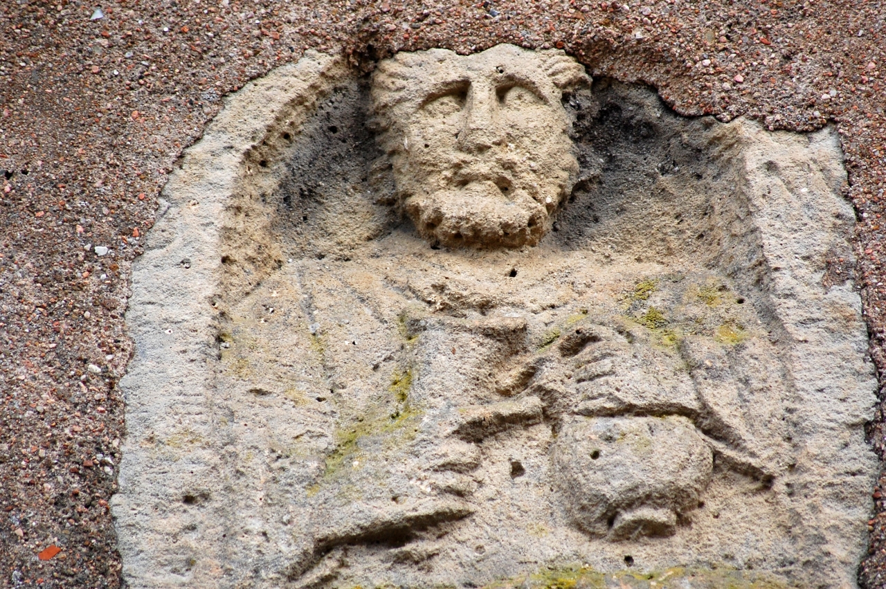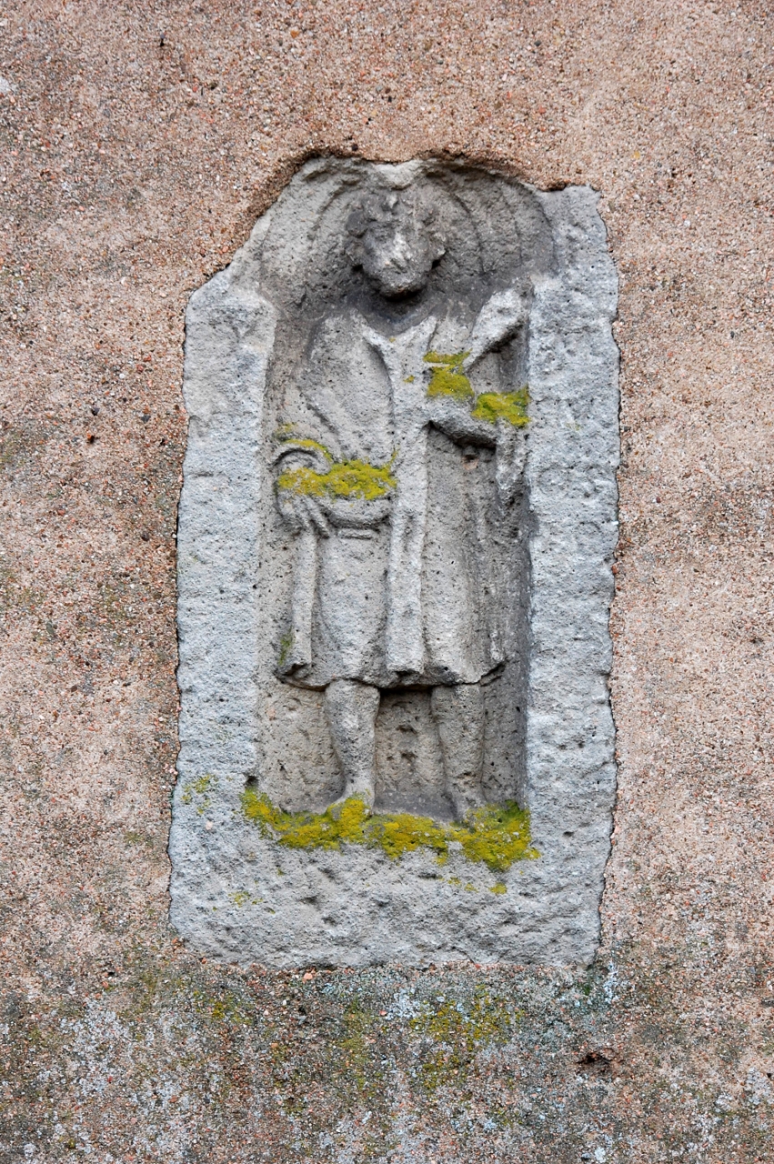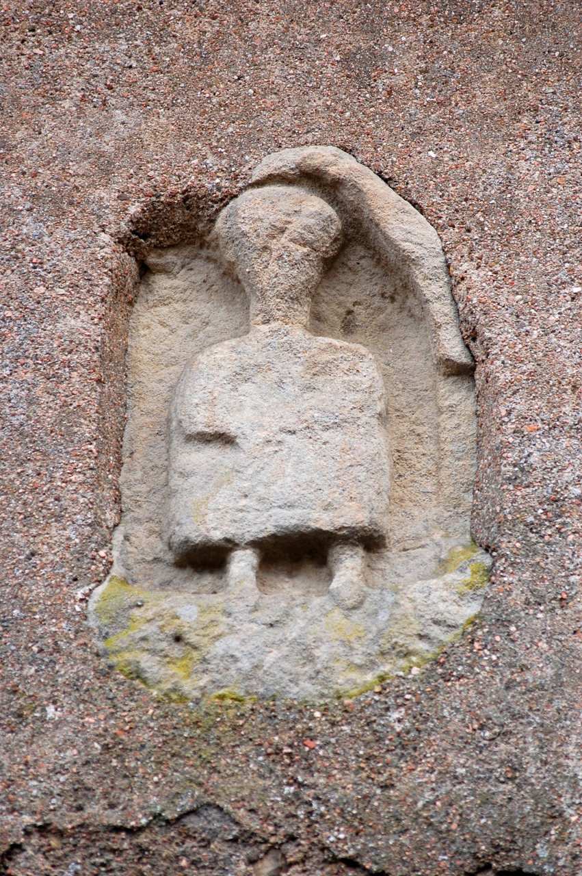 - Découverte avant 1848, cette stèle en grès mutilée, d’hauteur 1.50m, représentant un homme et une femme drapés, tenant chacun dans la main droite un objet allongé mal identifié. (L’abbé Devoucoux y voyait une sorte de cornet à liqueur ou a parfum. Inscription en haut à gauche. NO