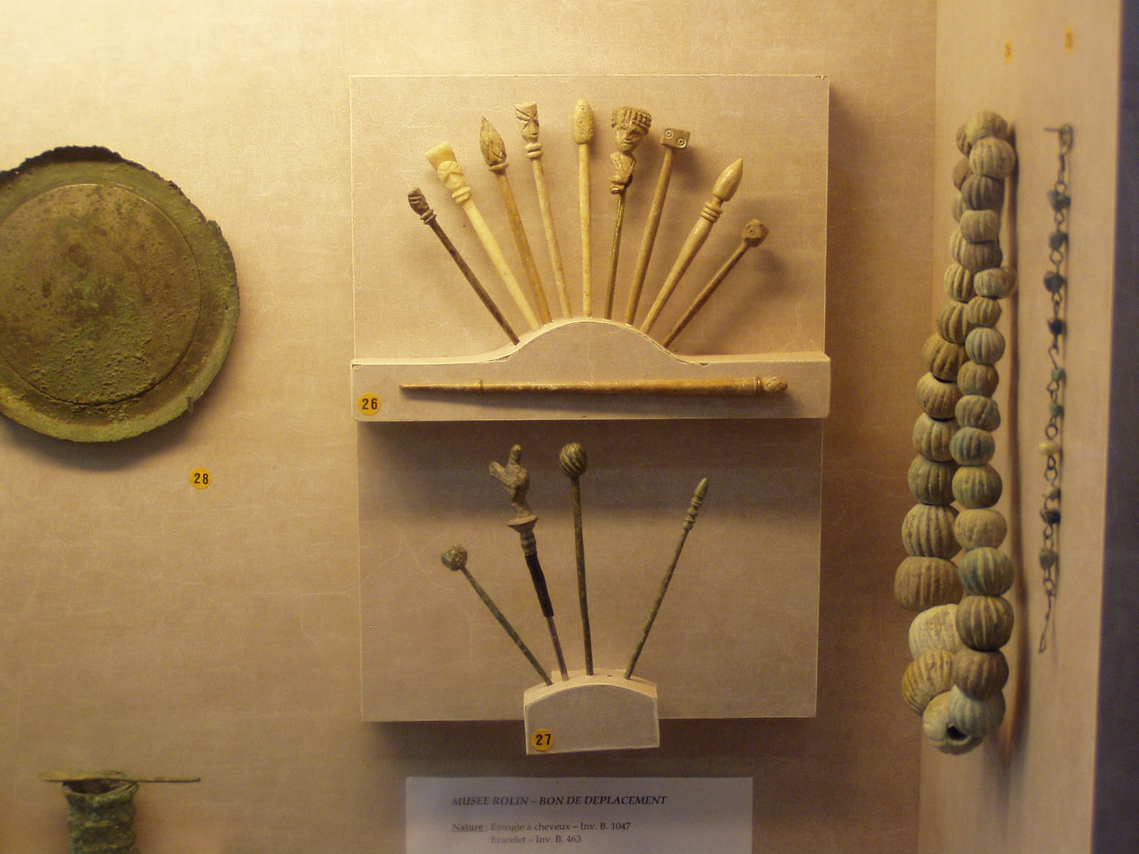 La troisième salle est riche en petits objets du quotidien. En os on a des jetons, des ai