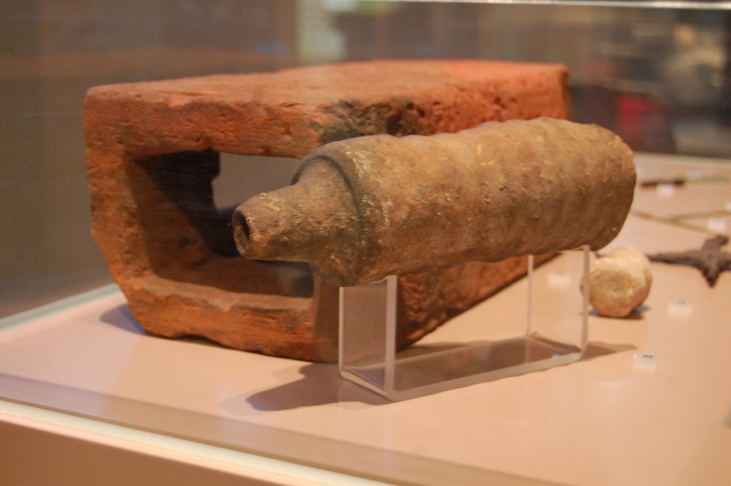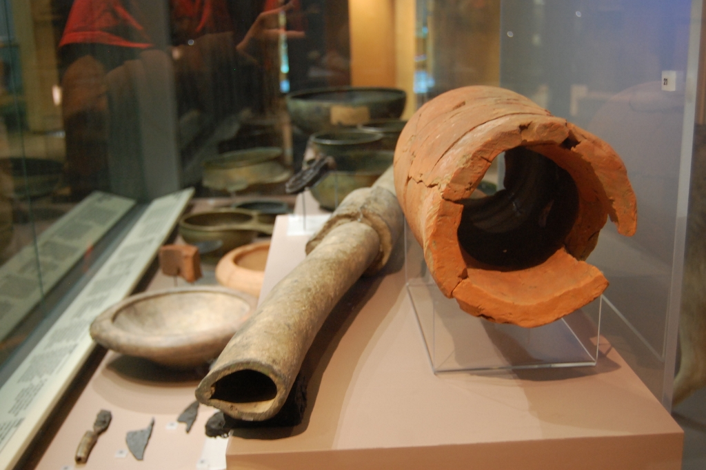 - pièces d’équipements diverses – au centre : élément d’une lorica segmentata (armure segmentée)