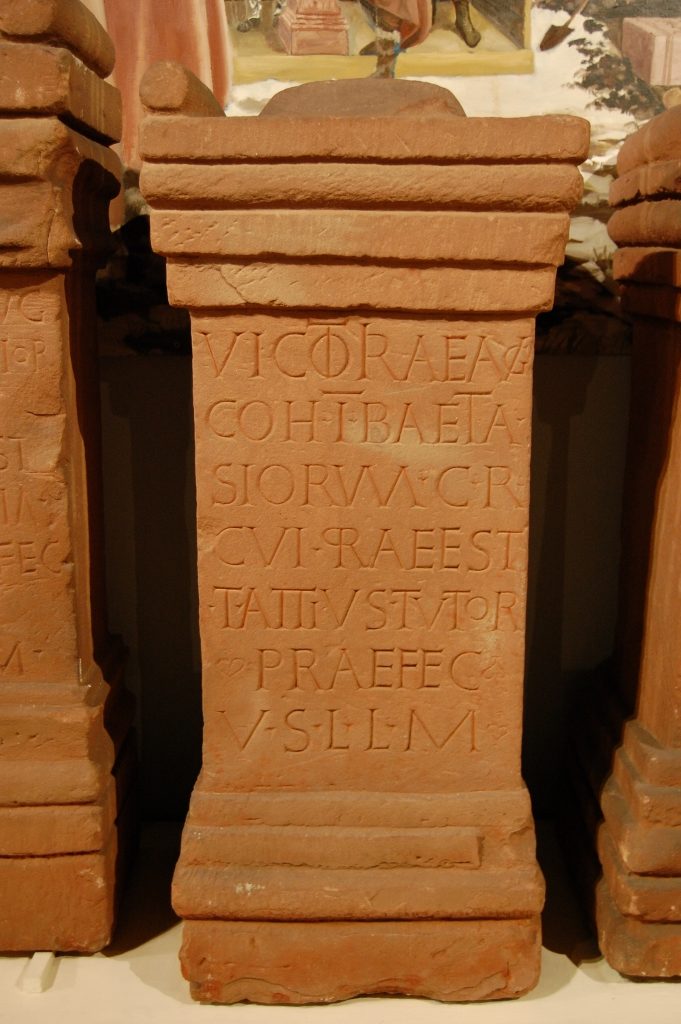 - Autel : I O M COH I HISP EQ CVI PRAE EST L ANTISTIVS L F QVIRINA LVPVS VERIANVS PRAEF DOMV SICCA EX AFRICA