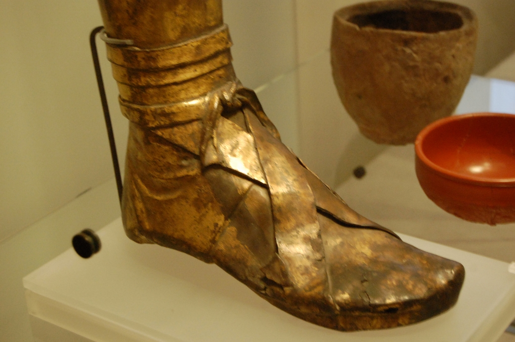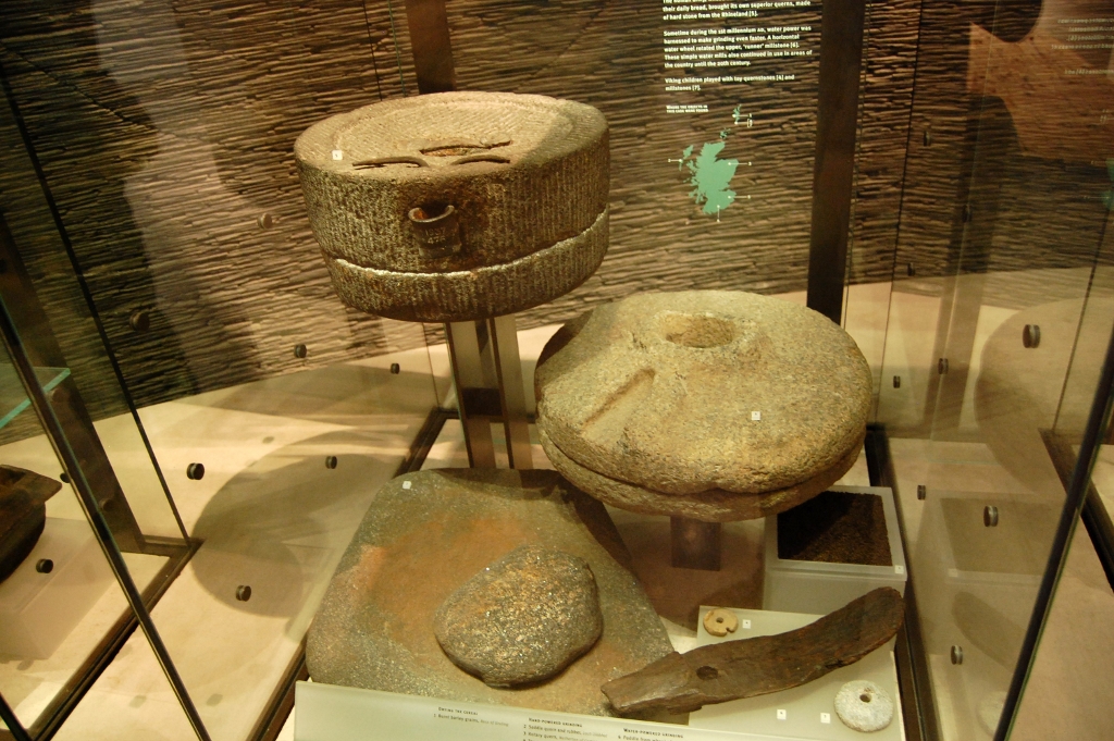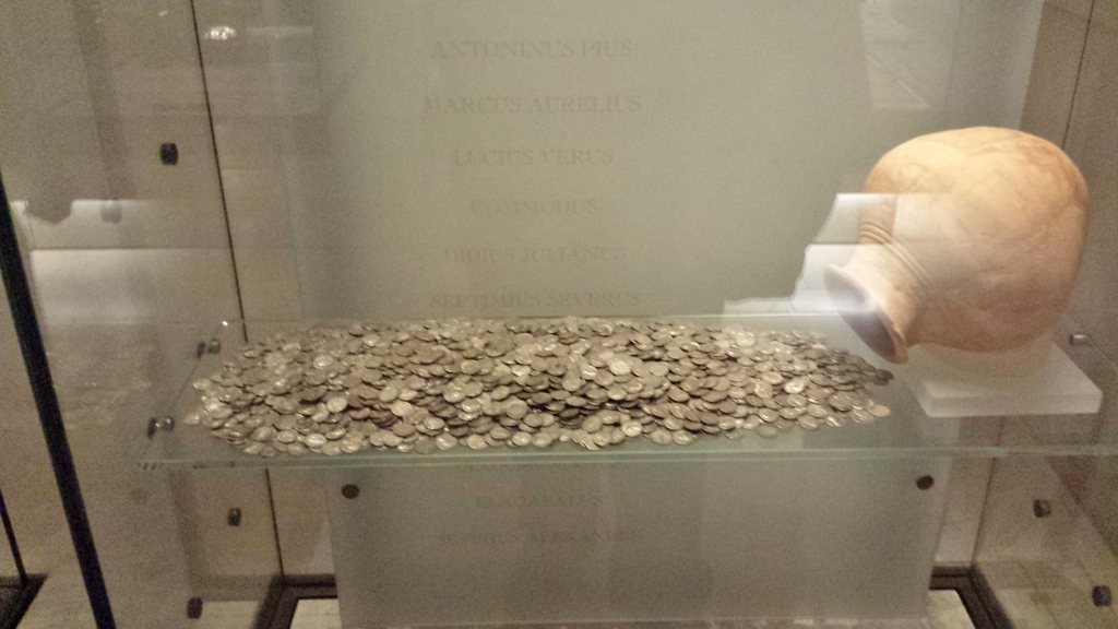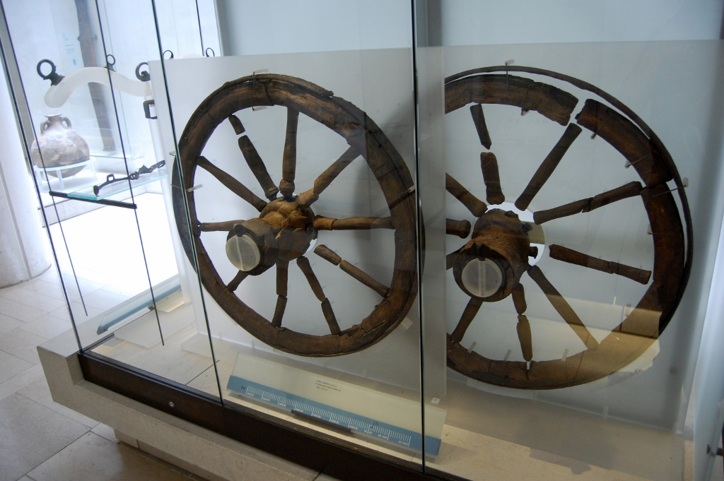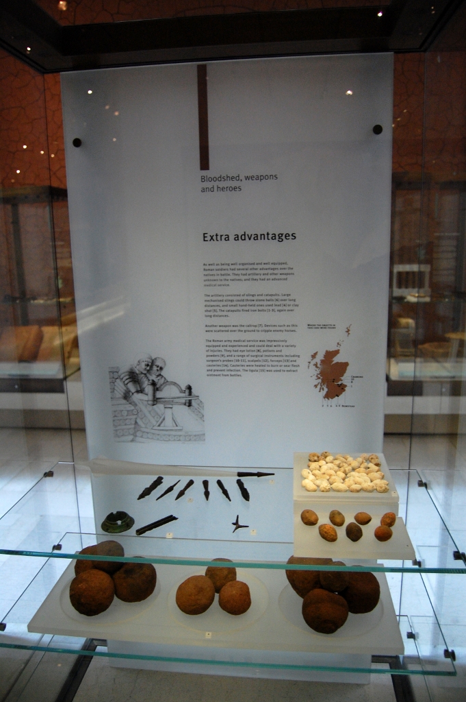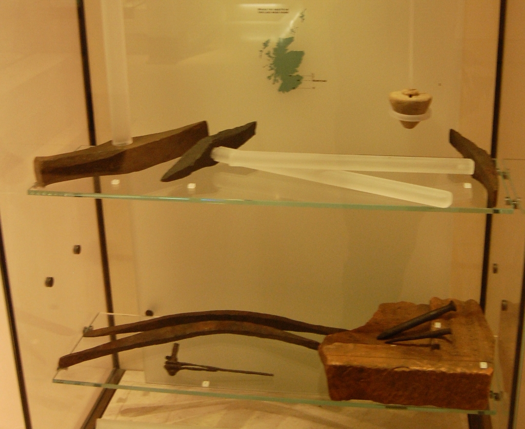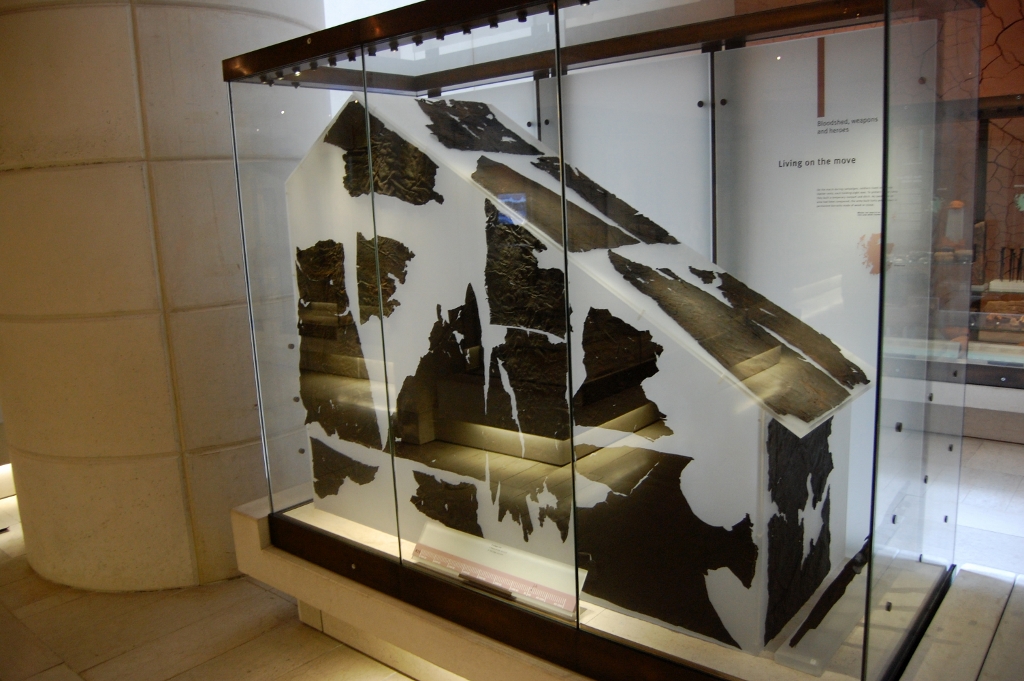 D’une vitrine à une autre se côtoient également de très belles pièces comme des roues en bois de chariot parfaitement conservées, des éléments de lit sans oublier un superbe trésor d’argenterie : le Traprain Law treasure. Celui-ci date du Ve siècle et comprend plus de 250 pièces d’argenterie. Mis au jour en 1919, cet ensemble a visiblement été enterré autour de l’année 425 ap. J.-C. Ces objets, dont une partie correspond à de la vaisselle de table, sont ornés de décors très fin où se côtoient l’iconographie gréco-romaine païenne et l’iconographie chrétienne précoce. Il est probable que ce trésor soit le résultat d’un cadeau diplomatique ou d’un paiement à des mercenaires en échange d’une protection contre les intrusions des Pictes, Scots et Angles. Quoiqu’il en soit, cet ensemble exceptionnel témoigne du savoir-faire des orfèvres de l’Antiquité.