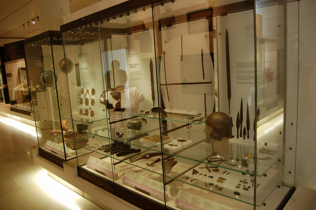 Le département dédié à l’archéologie (niveau -1) est particulièrement riche et les collections consacrées à la période romaine sont remarquables. Le mobilier exposé aborde ainsi le domaine purement militaire, avec des éléments de tentes, de pièces d’artillerie, d’armures, de cavalerie ou encore de casque, de stèles mais aussi la vie quotidienne du soldat et des civils à travers la présentation d’objet du quotidien (meule, situles, patère).