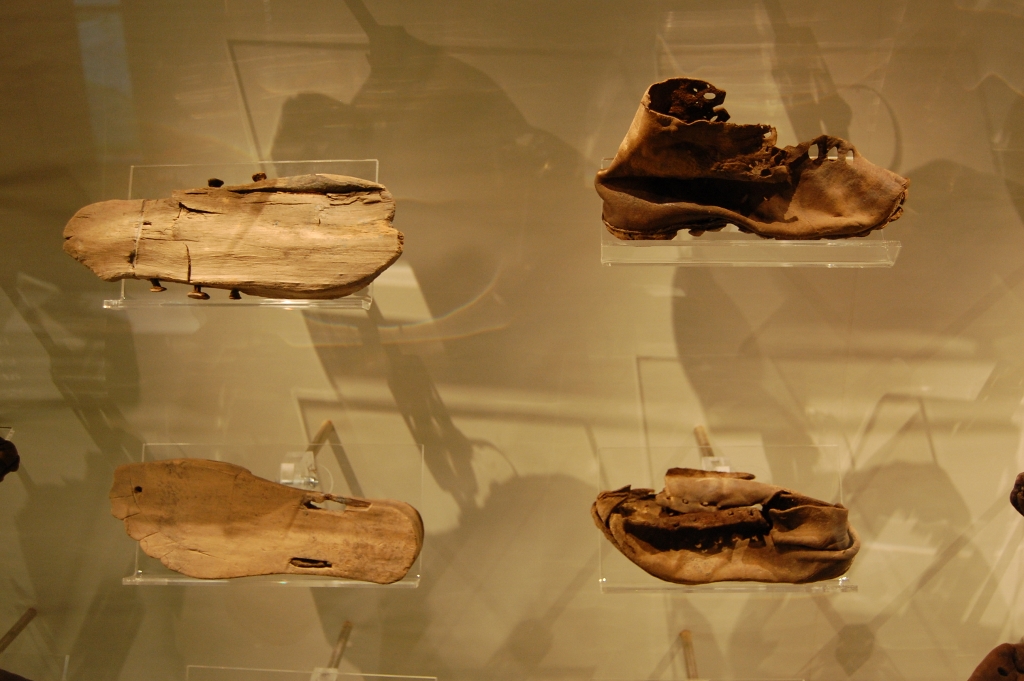 - Chaussures (calcei) et semelles en bois sur la gauche