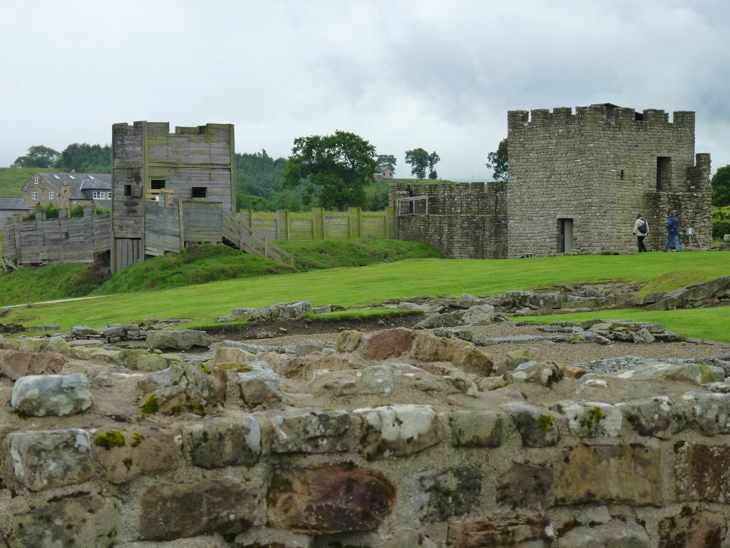 - Ces parties exposées ont été construites en 1972/73, pour montrer une petite partie de mur de pierre, une tourelle et une partie de mur végétal avec une porte de Milecastle en bois