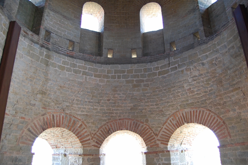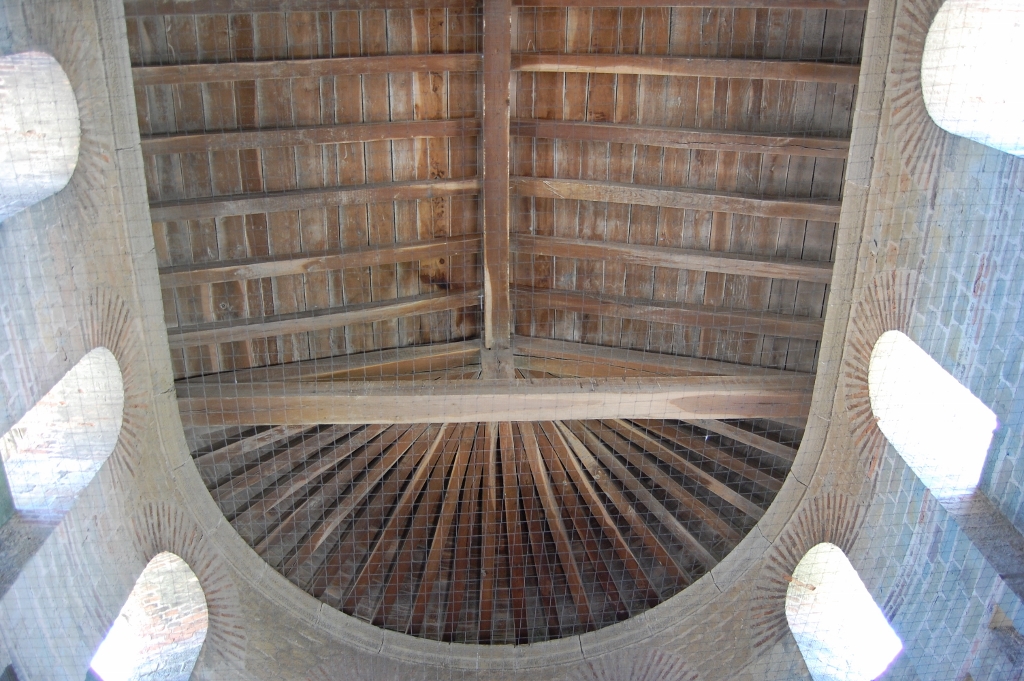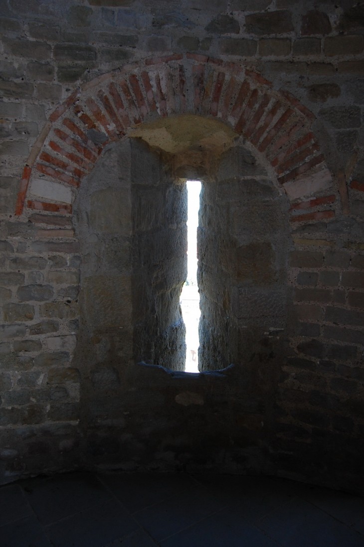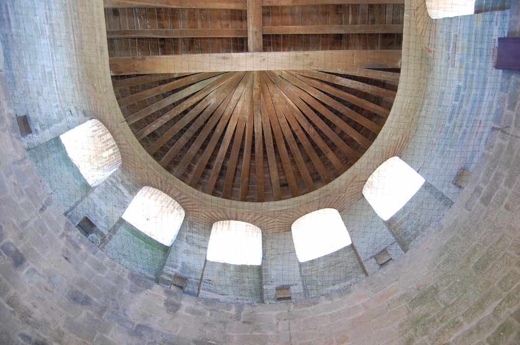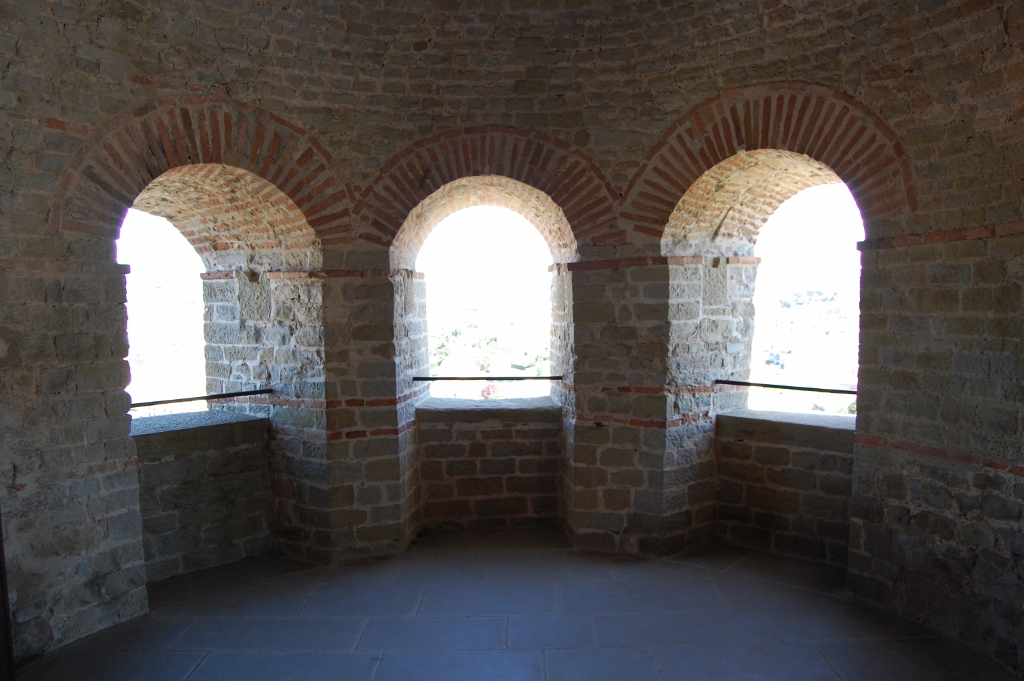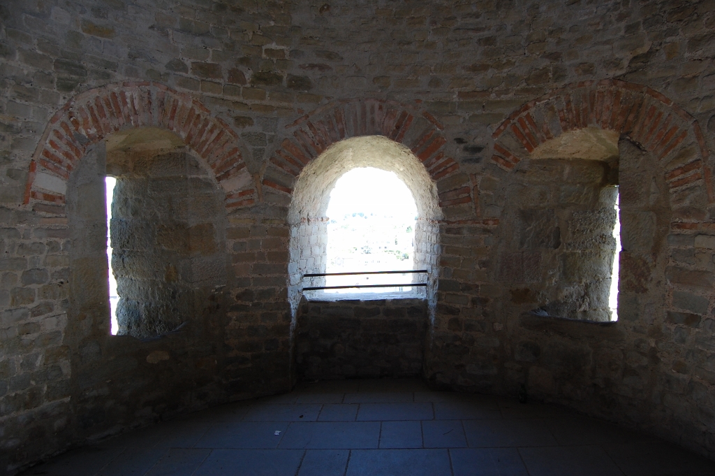 - vue intérieure de la tour rempart avec 2 des fenêtres comblées par des meurtrières