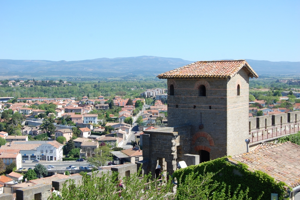 - vue de la partie haute d’une tour du rempart romain Carcassonne