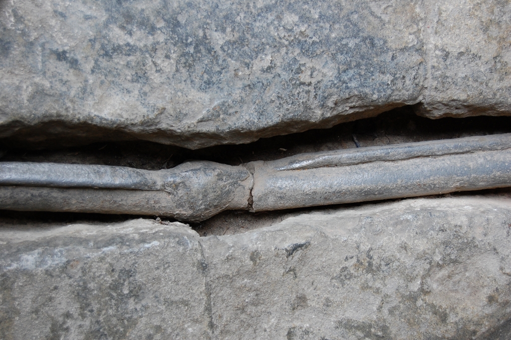 - le grand bassin des thermes de Bath. Toute la structure au-dessus du niveau des bases du pilier est post-romaine.